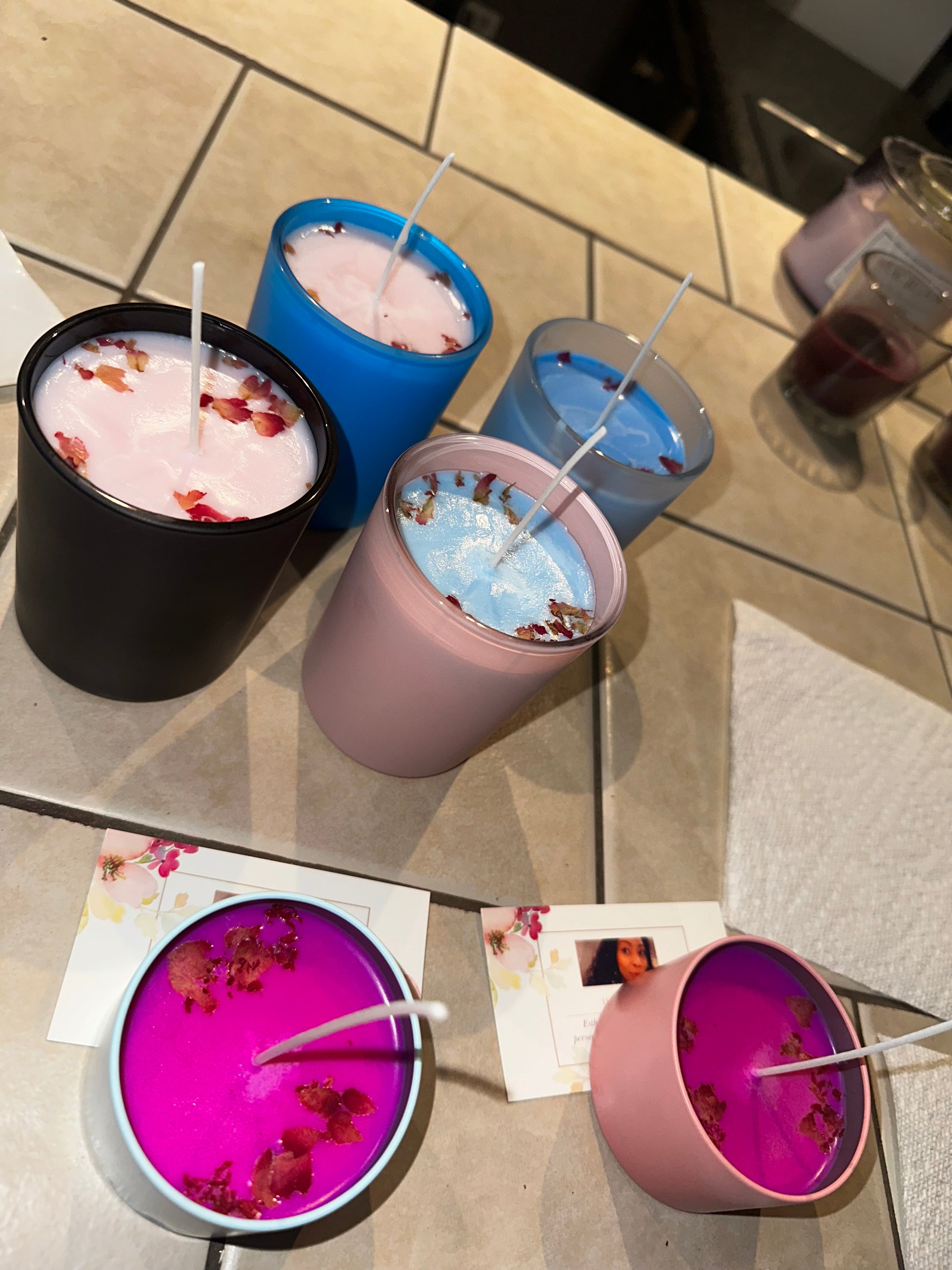 This soothing infused candle has a combination of scents such ch as Organic Myrrh , Organic Jasmine , Organic Rose , a hint on Chamomile & Organic Olive